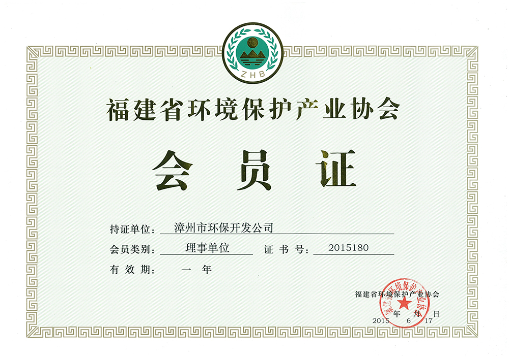 • 福建省環境保護產業協會會員證
